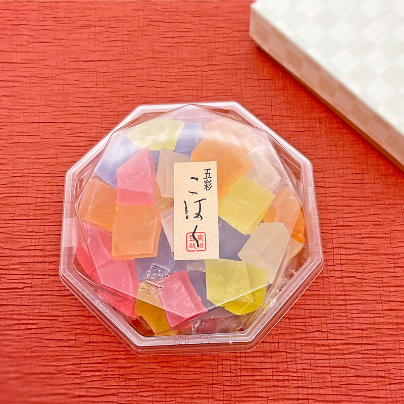 鮮やかな五色に仕上げた甘さ控えめの和風ゼリーです。